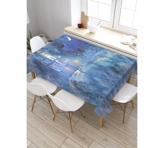 Прямоугольная скатерть из сатена JoyArty Туманные поиски tc_9349_120x145