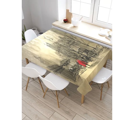 Прямоугольная скатерть из сатена JoyArty Туманный город tc_19639_120x145
