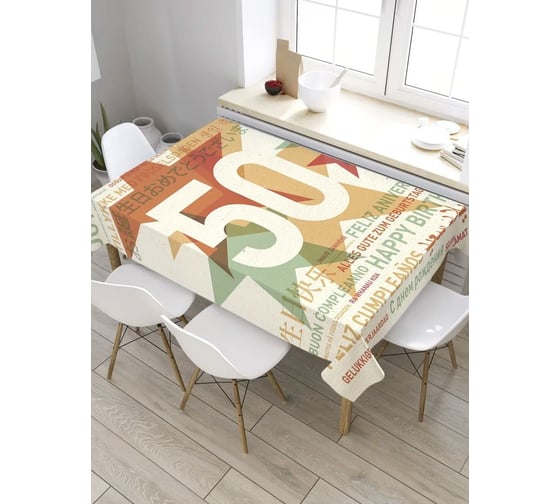 Прямоугольная скатерть из сатена JoyArty Успех 50-летия tc_33128_120x145