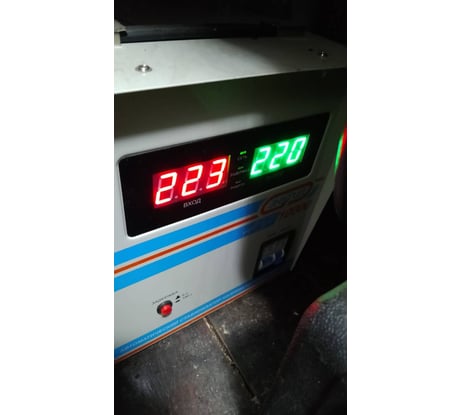 Купил для гаража. На входе бывает как завышеное напряжение, так и заниженное. От 180 до 245. В итоге при входе 235 понижает до 220, потом щелчок, уже 209, потом снова через какое-то время 220. При том, что смотришь сеть мультиметром до него и после, на входе правильные цифры, на выходе до 15 вольт разналгласия со стабом. Очень странный стабилизатор. Очень долгое время отклика.
