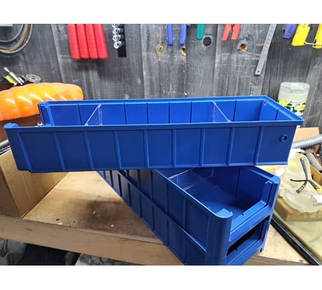 Очень хороший ЯЩИЧЕК.С помощью него разгрузил полку с инструментом.Можно вставить перемычки,и вот уже три отдела для инструмента длиной до 20 см,без перемычек-до38см
