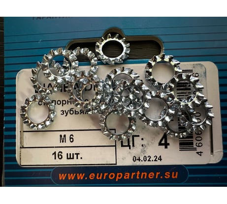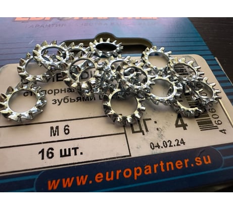 Отзывы об оцинкованной стопорной шайбе ЕВРОПАРТНЕР М6 DIN 6798А 16 шт. с наружными зубьями 12 0981 1
