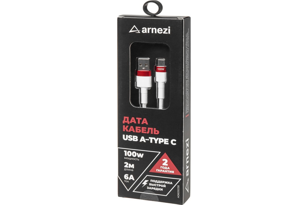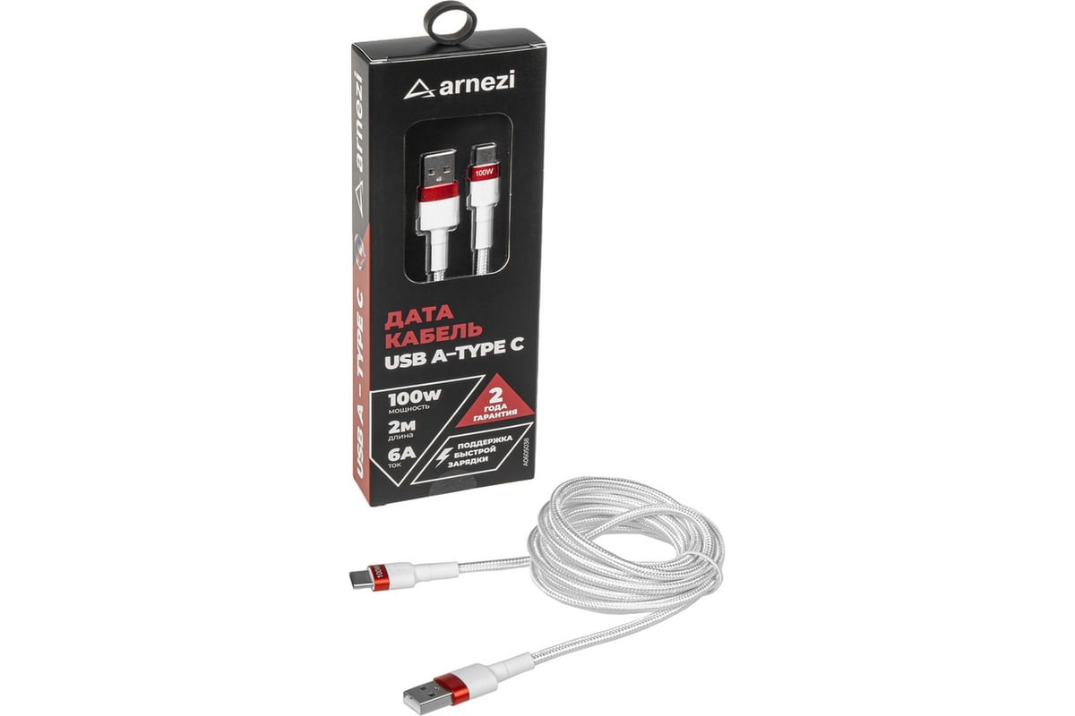 Дата-кабель Arnezi Usb A - Type C (2м, 6A, 100W) быстрая зарядка, в оплетке A0605038