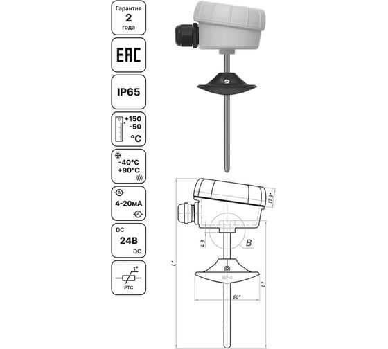 - Защита измерительного элемента: Гильза, герметик IP67.