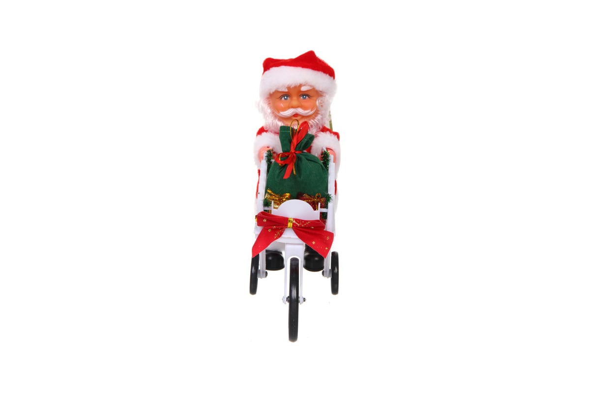Дед Мороз музыкальный Серпантин 20 см в красной шубе с тележкой (работает от 2хАА - в комплект не входят) 215-785