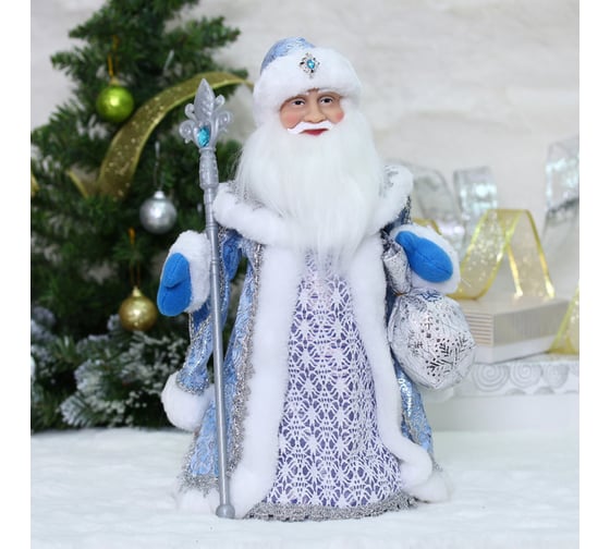 Дед Мороз музыкальный Серпантин "Волшебная сказка" в голубой шубке, 40 см 188-160