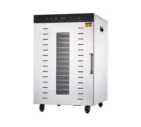 Дегидратор-сушилка FD-16 AIRHOT используется на предприятиях общественного питания и торговли для сушки овощей, фруктов, ягод, грибов и трав. Модель оснащена камерой с вентилятором в задней стенке, распашной дверью и электронной панелью управления с функциональными клавишами и цифровым дисплеем. Корпус выполнен из нержавеющей стали.