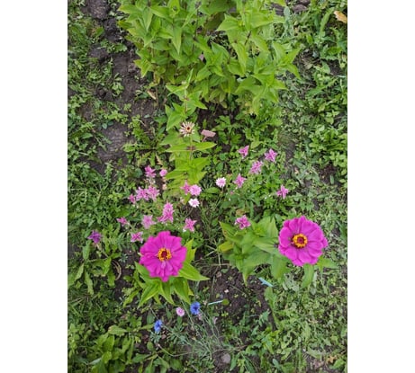 Все, как и заявлено, розовых оттенков. Состав: цинния, васильки, сальвия. Еще взошла астра, но не успела зацвести