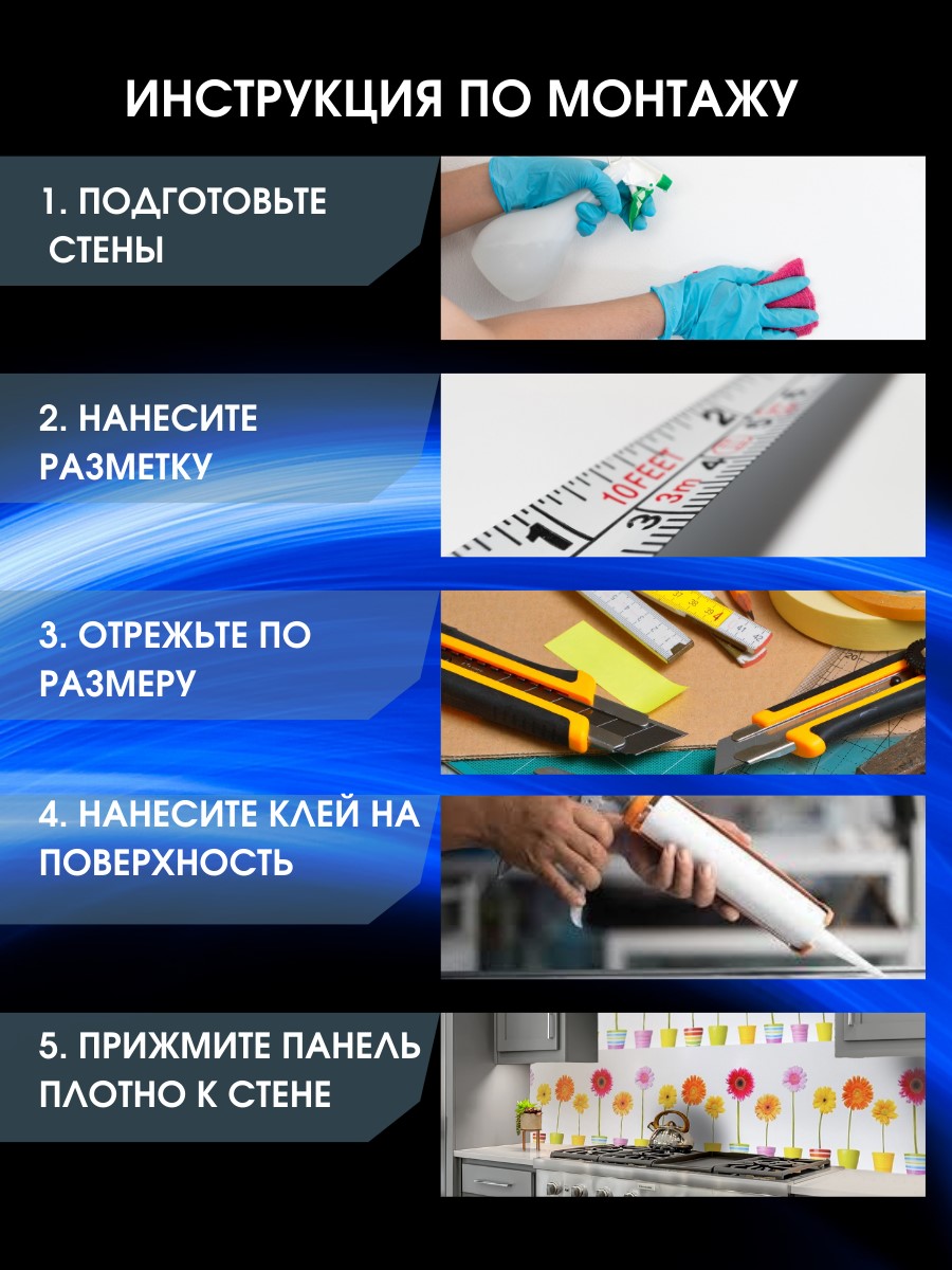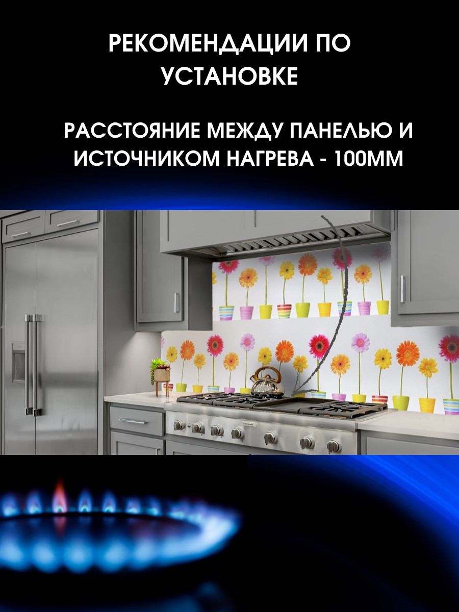 Декоративная панель ЮГPLASTМАРКЕТ герберы ТР8409783813 - кухонный фартук для декорирования стен для внутренних помещений с декоративным покрытием. Поверхность фартука защищена пленкой, что исключает различные потертости и повреждения на лицевой поверхности. Допустимый нагрев поверхности + 70 С.