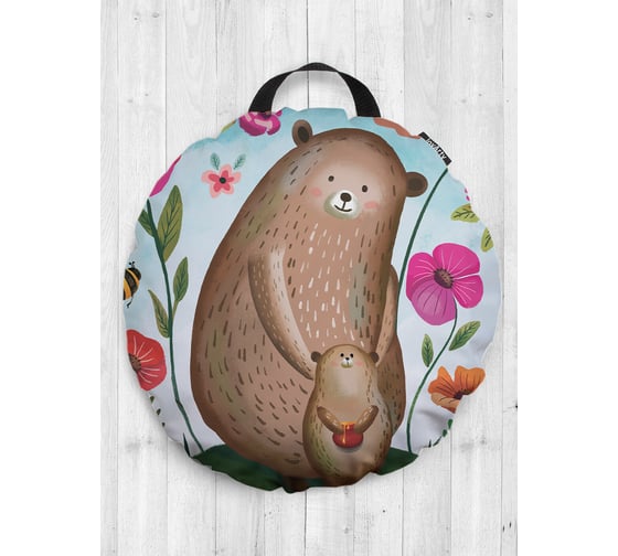 Декоративная подушка-сидушка JOYARTY "Мама медведица и медвежонок", на пол, круглая, 52 см dsfr_378650