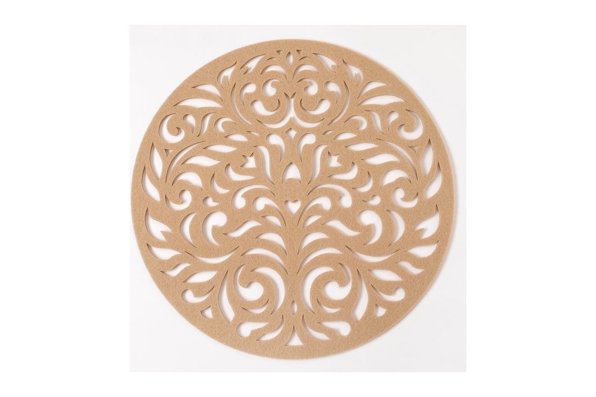 Декоративная салфетка Доляна Узоры бежевый, диаметр 30 см, 100% п/э, фетр 4016787