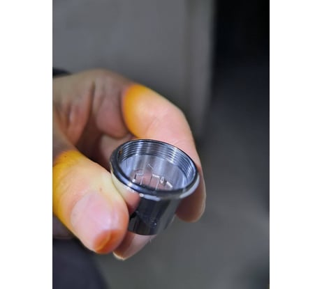 Хорошая пластиковая юбка. По краю внутренняя резьба. Поскольку резьба начинается от самого края, а на юбке нашего двухвентильного смесителя резьба начинается примерно в 2 мм от края, то образовавшуюся щель между смесителем и юбкой мы закрыли круглой резиновой прокладкой.