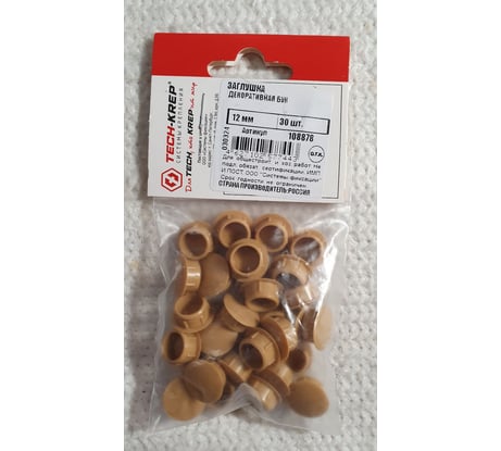 Декоративная заглушка Tech-Krep/Zitar 12 мм бук 30 шт - пакет 108878 На страницу товара62 ₽