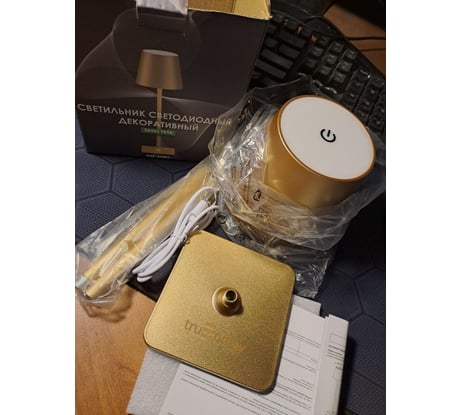 Отзывы о декоративном настольном светильнике светодиодном truEnergy 3W CCT (3000-6000K) D110xL380мм металле золотом 29001