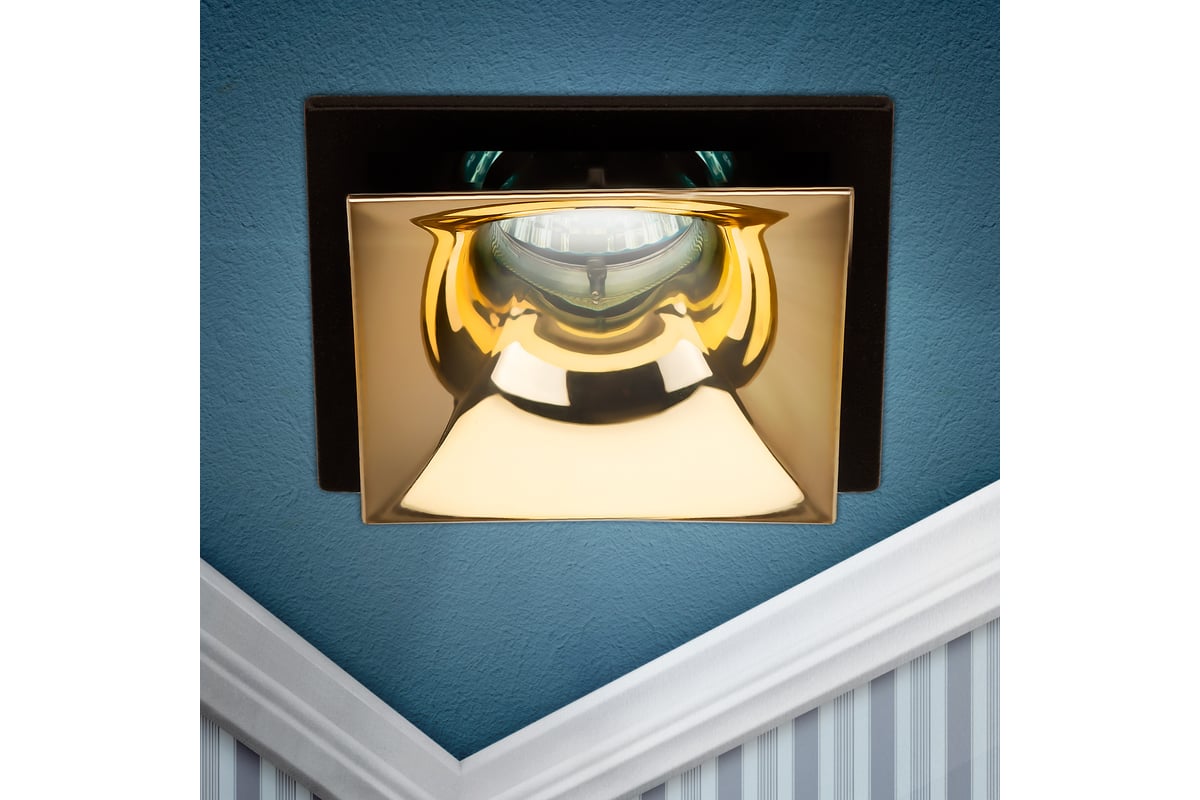 Декоративный встраиваемый светильник ЭРА KL102 BK/GD MR16, GU5.3, черный/золото Б0056358 предназначен как для основного освещения жилых и офисных помещений, так и для декоративной подсветки интерьеров.
