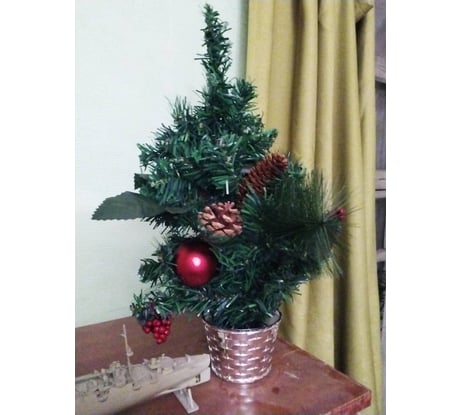 1. Аналог иголок мог бы быть за эти деньги более натуральным. 2. Торчащие из ствола маленькой елочки огромные листья выглядят нелепо.