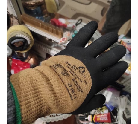 Шикарные износостойкие перчатки, аналогов за 200р не нашел. Не слишком тесные, для работы с мокрыми и снежными предметами. За 3 месяца активной работы (колка дров, чистка снега, работа с аккум. инструментом, монтаж профнастила) покрытие целое, дырок и порезов нет.