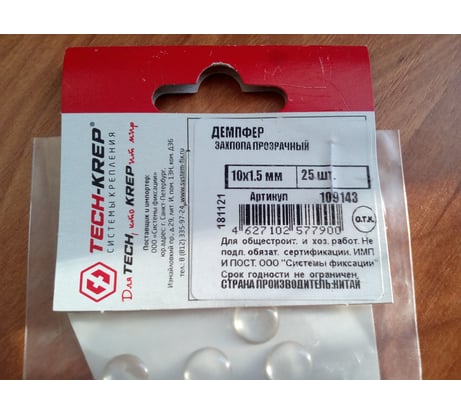 Отзывы о демпфере захлопа Tech-Krep/Zitar 10х1,5 мм прозрачный 25 шт. 109143