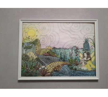Размер не под формат А3, а немножко меньше. Картину обрезать было жалко, поэтому она просто вылезла за контур рамки сзади