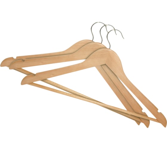 Набор из 3-х классических деревянных вешалок. Подходит для хранения как повседневной одежды, так и для тяжелых зимних вещей (пуховики, кожаные пальто и т.д.). Вращающийся крючок позволяют повесить вешалку под любым углом. По краям имеются углубления для бретелек и перекладина для брюк и юбок. Сделан из экологически-чистого сырья.