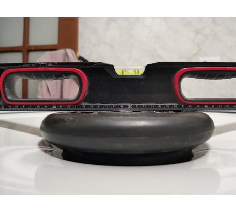 В основание удалось закрепить два прорезиненных блина от гантелей по 2.5 и 5 кг, итого утяжелил на 7 кг и стол наконец-то стал уверенно стоять при боковых нагрузках. В ножке есть центральное отверстие с резьбой, видимо, оно и предназначено для крепления утяжелителя, но вот почему им не комплектуют и не продают даже как опцию я не знаю, и это плохо.