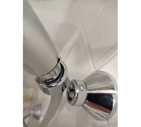Не держит лейку, шарнир падает в низ (Ранее был установлен аналогичный держатель, так внутрянка у него была другая, та черная штука внутри была не из пластика, а из резины, поэтому то и держала). А так же плохо ставится лейка в кольцо, стандартный душевой шланг еле проходит.