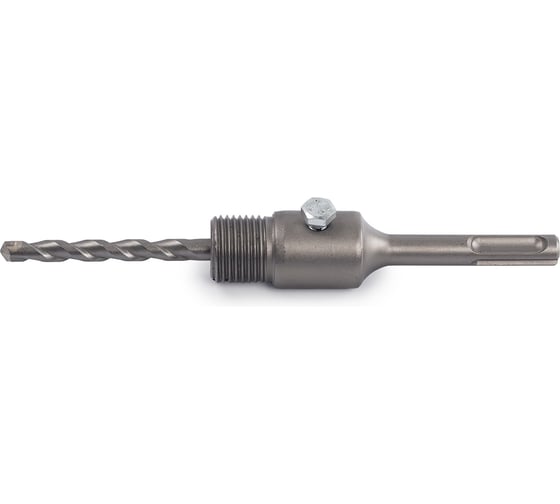 Держатель применяется для крепления и быстрой смены твердосплавных и биметаллических коронок за счет резьбового соединения М22 шаг резьбы 2мм. Фиксирующий болт обеспечивает надежную фиксацию в держателе центрирующего сверла или бура, с помощью которого отцентровать коронку при сверлении. Хвостовик SDS+ позволяет использовать держатель практически со всеми видами бытовых перфораторов и ударных дрелей с патроном данного типа. Держатель продается в комплекте с буром по бетону 8х110мм.