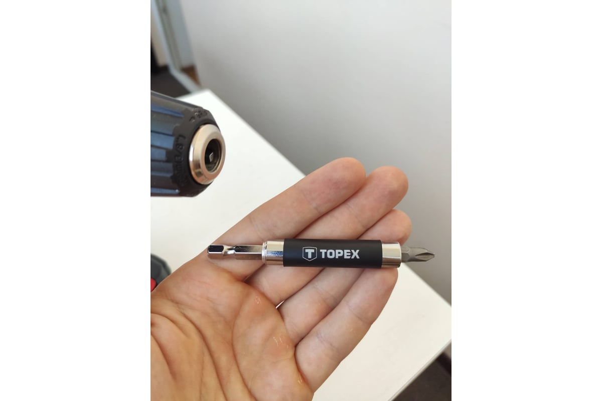Для тех, кто понимает, ооочень нужная вещь. Тем, кто не понимает, поясню - этот держатель бит не дает бите сорваться с самореза и сделать незапланированную дырку (например) в натяжном потолке. Трубка выдвигается вверх и не даёт бите слететь с самореза в узкой трубке. И это бесценно в определённых моментах!