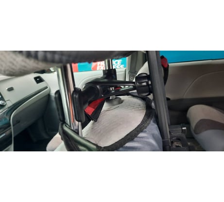 К предыдущему отзыву, нашел фотографии, где видно, что скоба крепления к подголовнику под углом.