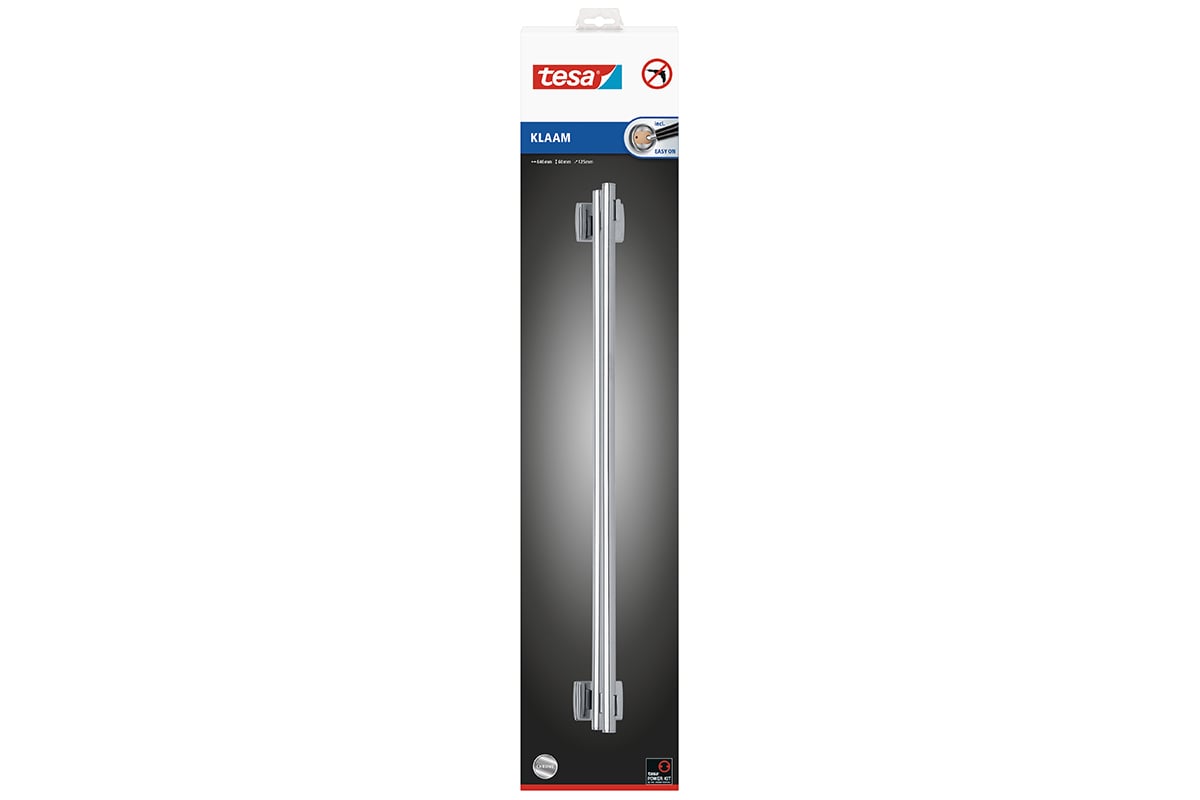 Держатель для полотенец TESA Klaam, самоклеящийся, 60x646x125 мм 40265-00000-00 крепится к стене очень легко и надежно. Благородный минималистичный дизайн.