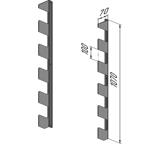 Держатель для садового инвентаря Parallax (5 ячеек) черный 1070х70х20-2 532BX0700701072-SAD