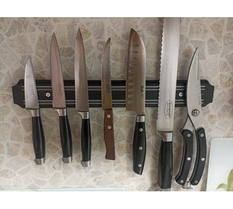 Магнитный держатель для ножа 33см AKH033 - это практичный и функциональный аксессуар, который станет незаменимым помощником на кухне или в мастерской. Держатель предназначен для размещения стальных ножей, кухонной утвари, отверток, деталей, ключей и других металлических аксессуаров. Это позволяет сэкономить пространство рабочей зоны, привести в порядок инструменты и детали.