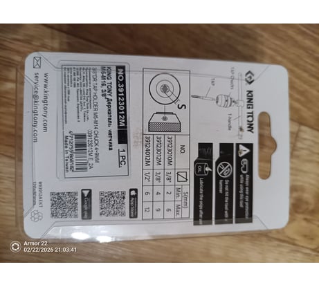 Отзывы о держателе метчика KING TONY М4-М12, 3/8" 39123012M