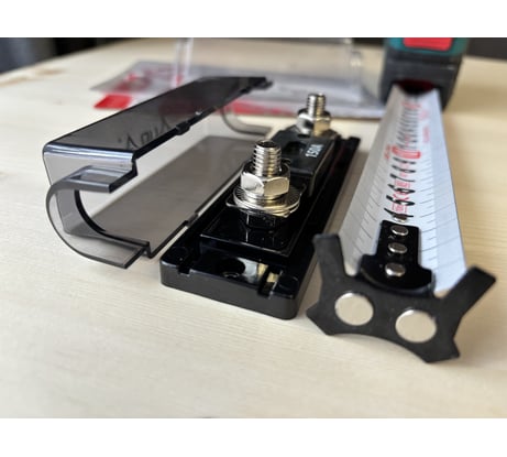 На вид добротные держатель и сам предохранитель 150А, пластик не тонкий и не дешевый, никелерованный металл. Приобретен для установки в цепь АКБ для бензогенератора