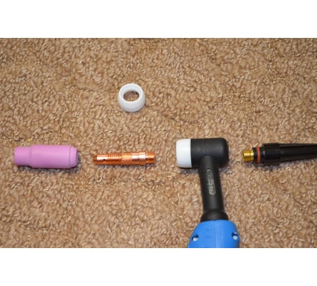 Хороший рабочий держатель, аргон не травит, воздух не подхватывает. В горелку вкручивается хорошо, с установкой сопла и электрода вопросов не возникало.