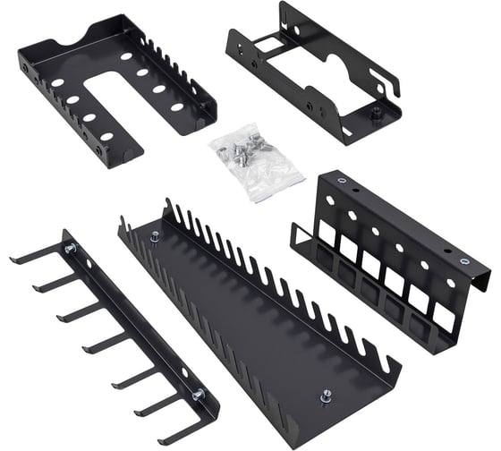 Этот набор представляет собой практичное и универсальное решение для упорядочивания рабочего места в мастерской, гараже или подсобном помещении. Каждый элемент спроектирован для удобного размещения отверток, ключей, плоскогубцев, бит, торцевых головок и других повседневных инструментов.