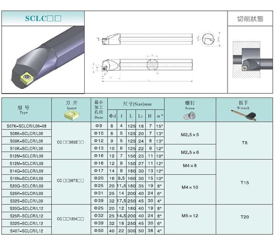 Резец токарный для внутреннего растачивания со сменными пластинами. Для пластин CC..1204... Крепление пластины - тип S (крепление пластин винтом), угол в плане - L 95°, исполнение - правый, общая длина - 300мм, сечение - 40мм.