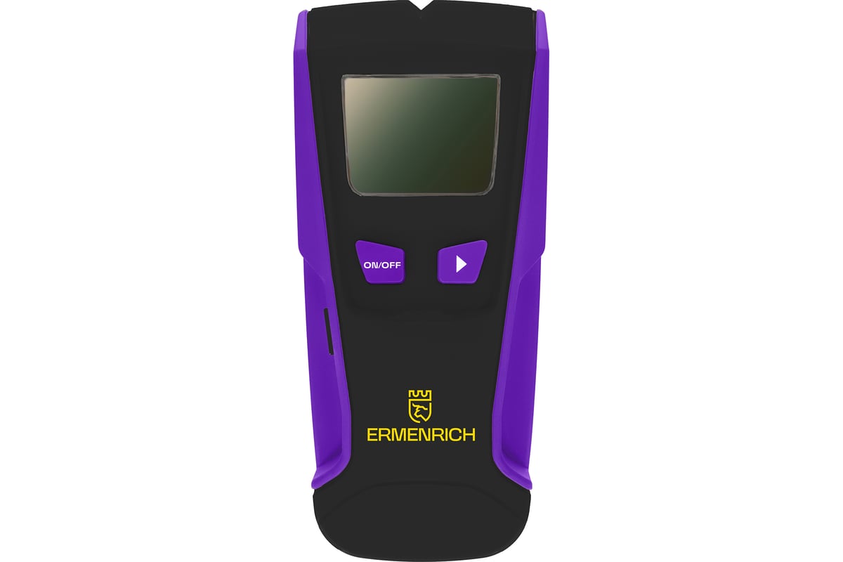 Мобильный детектор Ermenrich Ping SM30 – отличное решение для строителя, которое позволит обезопасить себя во время работы с перфоратором. С помощью детектора можно найти проложенную в стенах электропроводку и исключить ошибки, которые могут привести к ее повреждению. Кроме того, детектор будет полезен для поиска спрятанных под слоем штукатурки металлоконструкций и деревянных объектов. Здесь есть встроенный ЖК-экран с подсветкой для вывода всей информации.