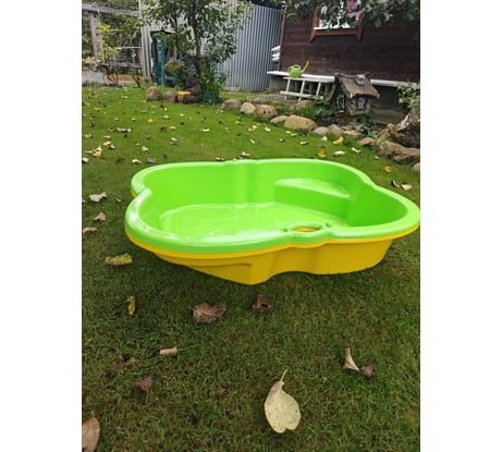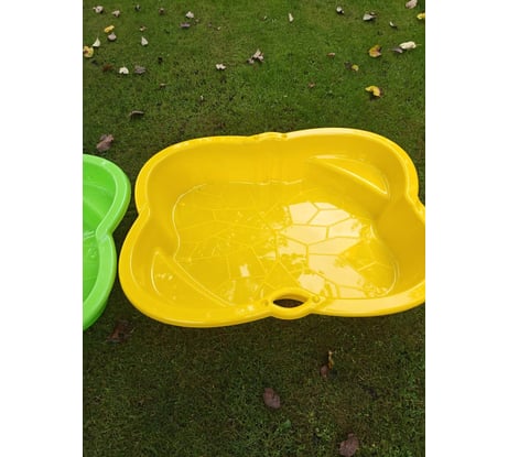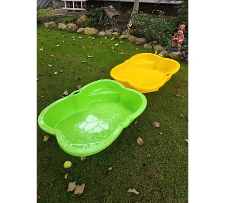 На вид сделано из качественной пластмассы, чистое литьё, без задиров .Купил две штуки - в одну песок, вторую можно использовать как маленький бассейн, а на случай дождя как крышку песочницы.