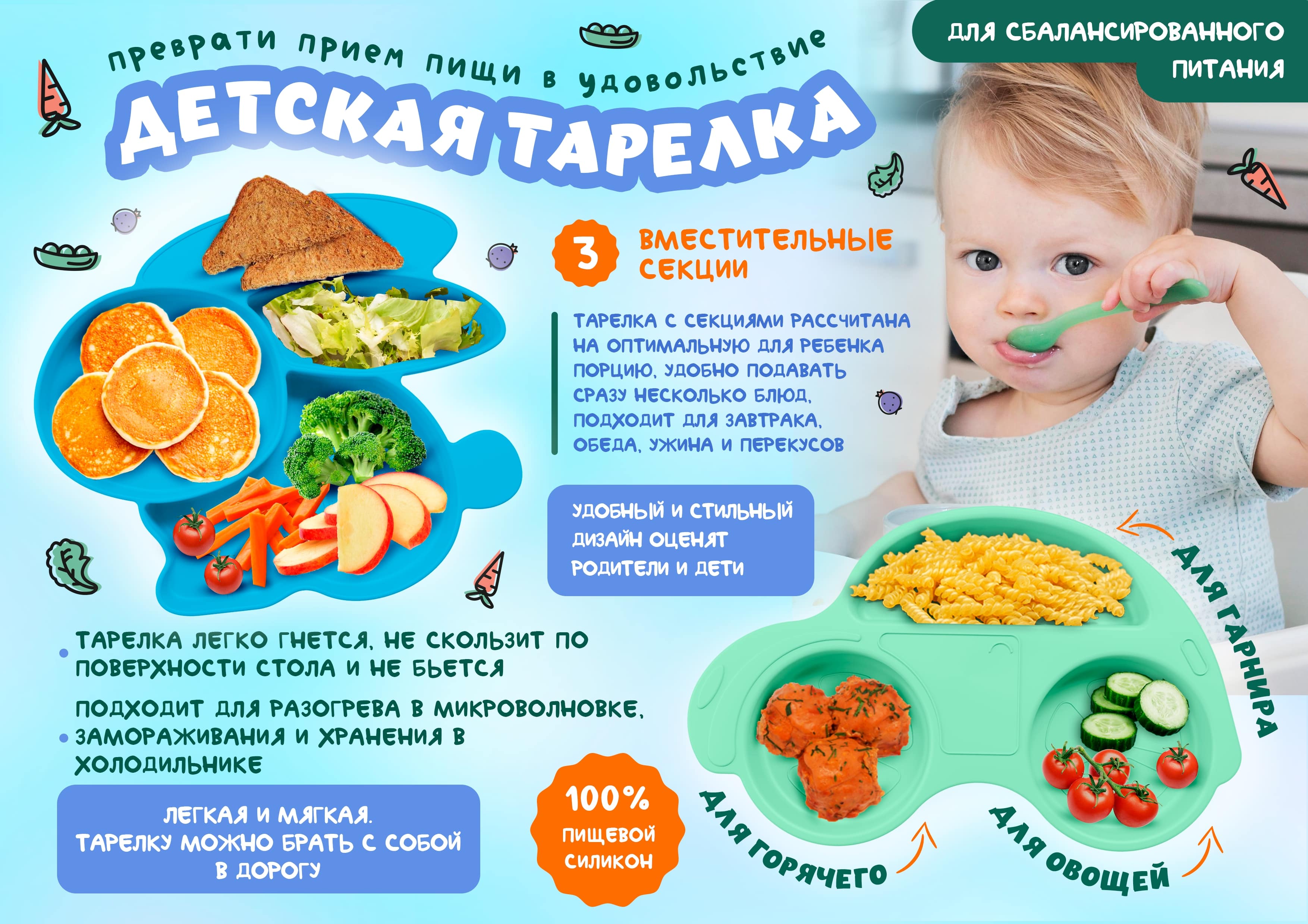 Силиконовая тарелка с секциями превратит прием пищи в удовольствие.