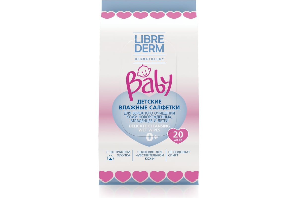 Детские влажные салфетки для очищения кожи новорожденных, младенцев и детей LIBREDERM Baby 20шт