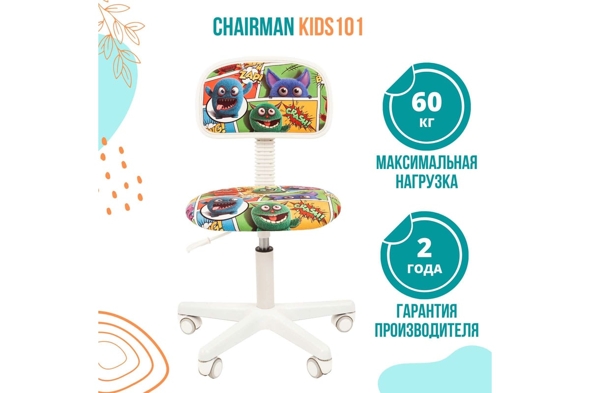 Детское кресло CHAIRMAN Kids 101 монстры ткань 00-07027821 позволяет организовать отличное рабочее место для детей и подростков очень разного возраста - от 6-7 и до 14-16 лет - даже на самой маленькой площади.