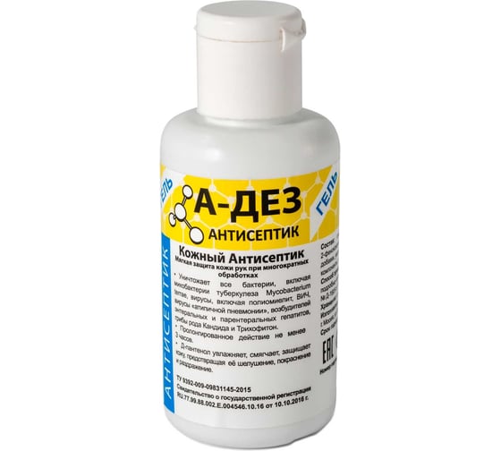 А-ДЕЗ-Антисептик-гель – это готовый к использованию прозрачный гель без цвета, с типичным спиртовым запахом, который может быть дополнен отдушкой.
