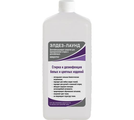 БАЗОВАЯ ДЕЗИНФЕКЦИЯ Элдез-Лаунд дезинфицирующее средство для стирки 1л. ЭЛ-ЛД-360 - это современное, эффективное и безопасное средство для дезинфекции и стирки в профессиональных и бытовых условиях, обладающее широким спектром антимикробного действия.