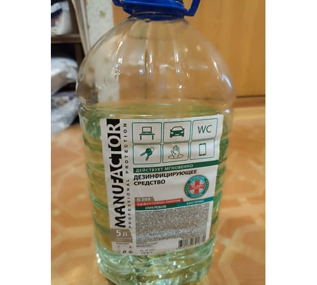 Антисептическое дезинфицирующее средство MANUFACTOR 5 л Я0000025379 содержит 70% спирта и подходит для обработки рук, ступней ног, дезинфекции обуви. Обладает эффективностью в отношении грамотрицательных и грамположительных бактерий (включая микобактерии туберкулеза), вирусов, грибов рода Кандида и Трихофитон. ПЭТ упаковка 5л будет выгодным вариантом не только для дома, но и для офиса, больниц и поликлиник, пищевых производств и иных мест. Средство обеспечивает антимикробное действие в течение 3-х часов. Не сушит рук, не вызывает ощущение липкости.