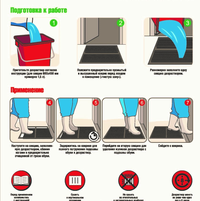 Дезинфицирующий коврик «ХАССП-Контроль» применяется для обработки поверхности обуви и передвижного инвентаря от бактерий и вирусов. Коврик изготовлен из износостойкого ПВХ материала с ворсисто-петельчатой структурой для лучшей обработки поверхности и уменьшения количества готового раствора для заправки дезковрика. Скошенные края коврика позволяют беспрепятственно проезжать через дезковрик не позволяя его миграции по полу.