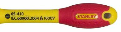 Безопасность Стержень диэлектрической отвертки FATMAX 1000V 2.5 х 50 мм Stanley 0-65-410 с полиамидным изоляционным покрытием, для безопасной работы под напряжением. |