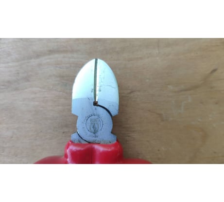 Выдали мне на работе усиленные бокорезы КВТ две штуки. У одних явный брак, режущие кромки не совпадают, у других заточка – третий сорт, не брак. В шарнире люфт, причём разный у разных бокорезов, после всего сказанного, понятно, что бокорезы плохо кусают. Вид у них тоже не очень, литьё плохо обработано. Теперь о хорошем, сталь у них, предположительно, 45-55 и они прошли термическую обработку. Одни бокорезы переточил, другие не переточишь – на выброс. Про нюансы заточки здесь рассказывать не уместно, но кое-что видно на фотографии. После заточки стали кусать одножильную медную проволоку 25мм2, без чрезмерных усилий, примерно также кусают стальную не калёную проволоку 3 мм в диаметре, 4мм кусают с большим усилием, саморезы не кусают. Вообще, универсальных кусачек, одновременно кусающих медный провод, стальную не калёную проволоку и саморезы – нет. Для медного провода, стальной не калёной проволоки, у меня специальные бокорезы, для саморезов то же. Те, что продаются затачивают, как правило, для перекусывания твёрдой стали, медную проволоку кусают плохо. Для медной проволоки их надо перетачивать, беда только в том, что далеко не все бокорезы можно переточить.