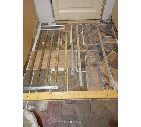 Крепкая, я этими рейками черновой дощатый пол странной квадратно-гнездовой конструкции стягивала. Без реек сколько шурупов не загоняла во все стороны и под всеми углами, все равно скрипел мой пол и кряхтел, а как стянула, полная тишина наступила.