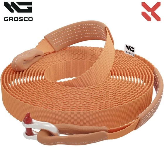 Текстильный буксировочный трос GROSCO. Наиболее популярный вид тросов для буксировки, позволяет вытягивать автомобили, грузовики, лодки, прицепы и другие транспортные средства.